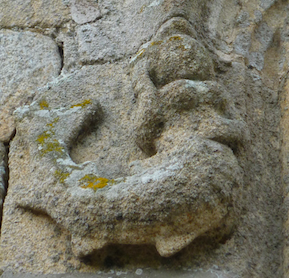 Une sculpture en granit représente une sirène sur la façade du manoir.